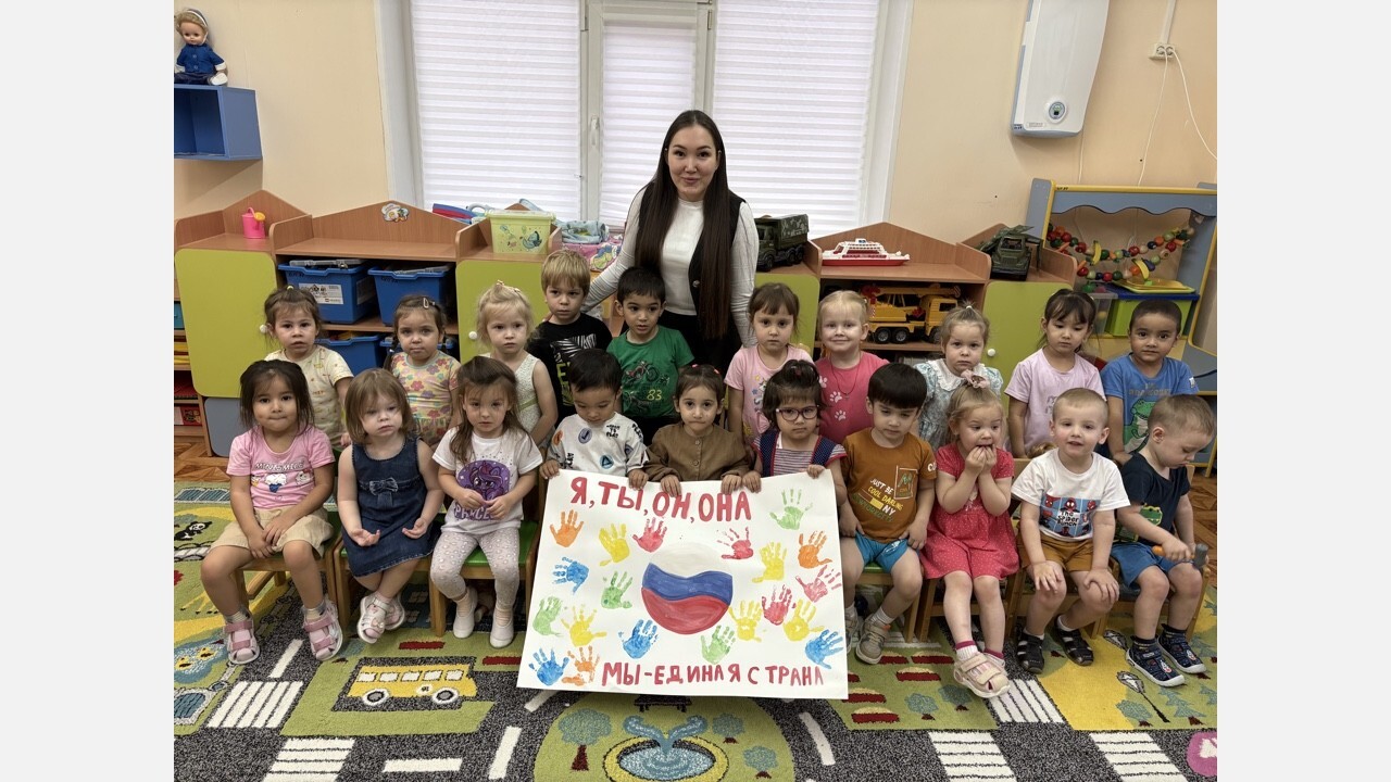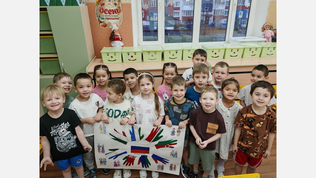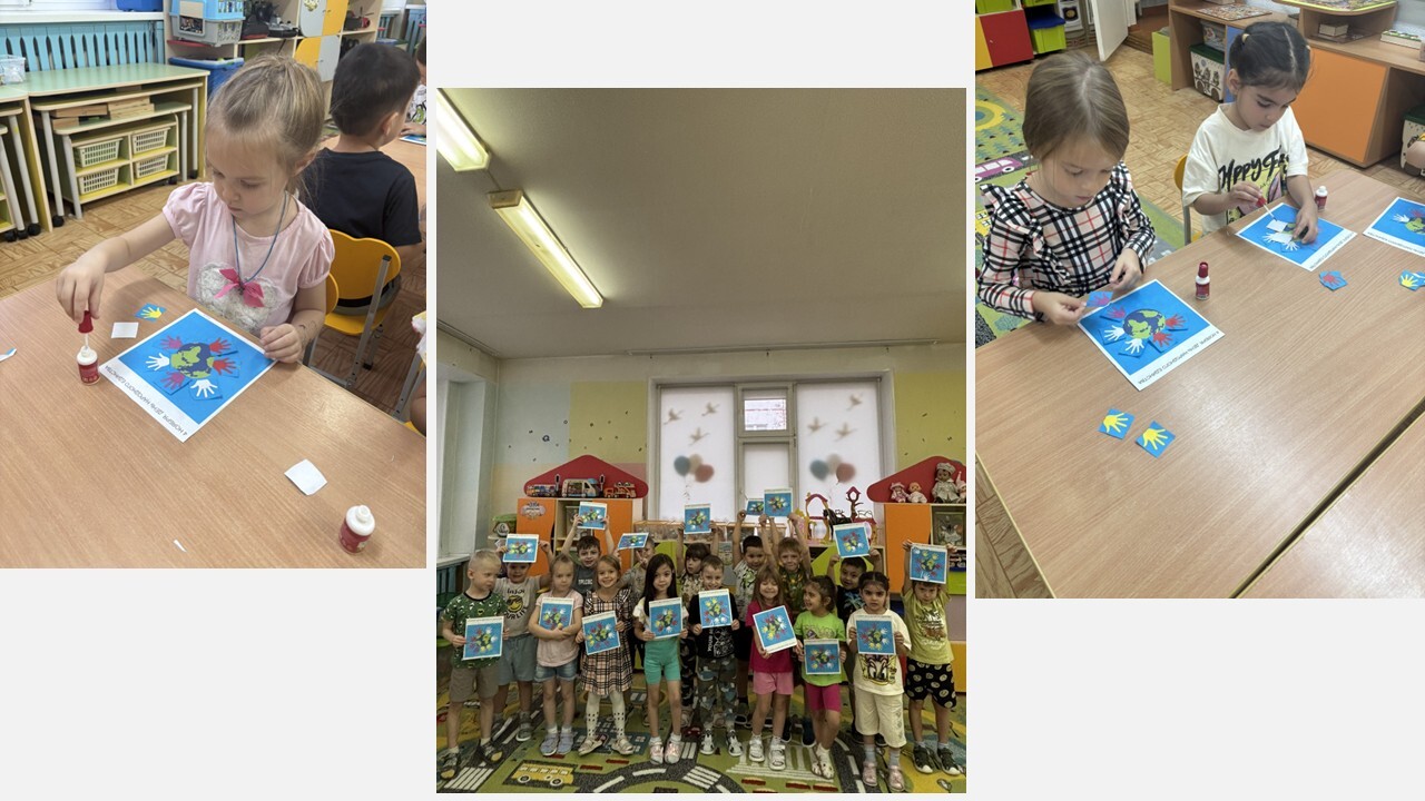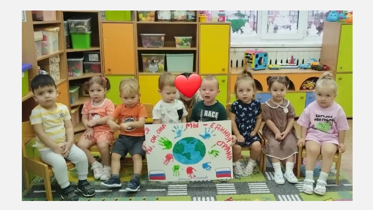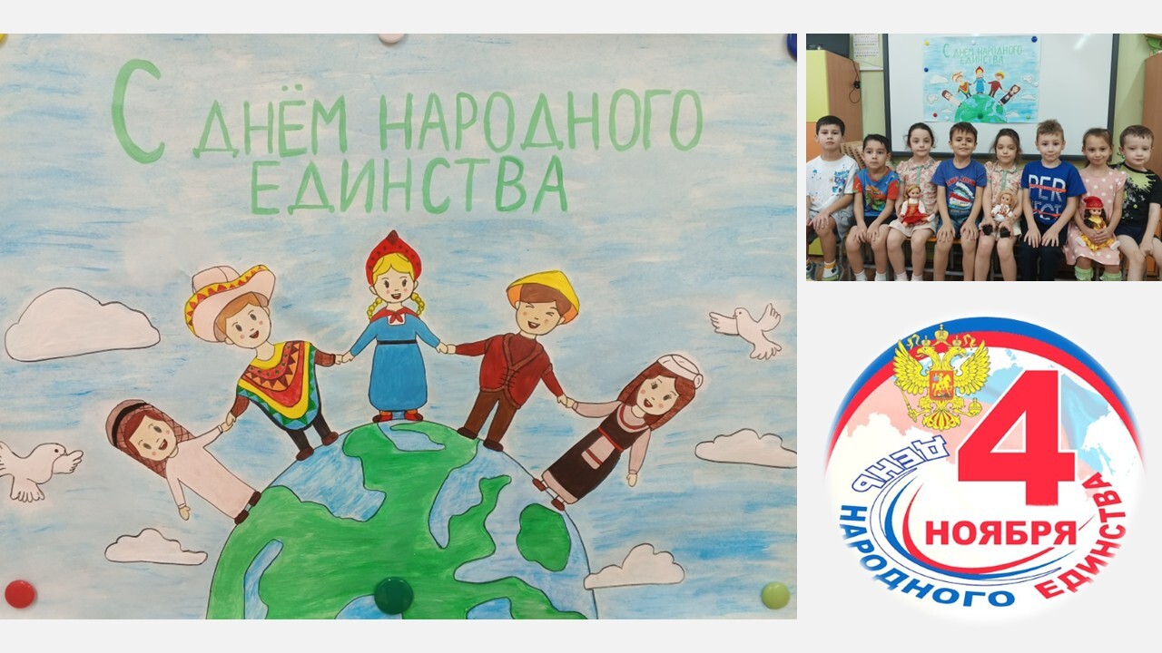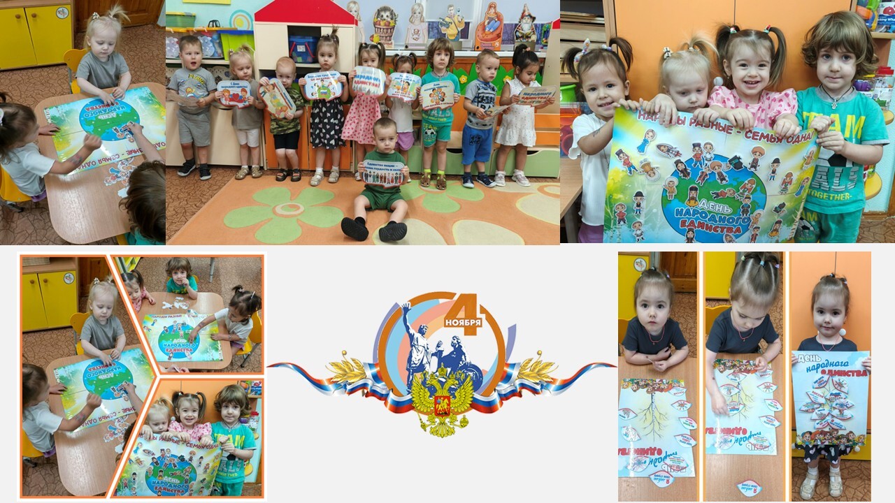 Воспитанников групп «Колобок», «Белоснежка», «Теремок» воспитатели в доступной форме познакомили с понятиями «дружба», «взаимовыручка» и «единство» и изготовили плакаты, символизирующие дружбу народов.