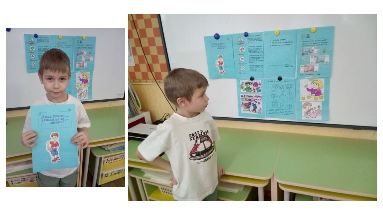 А воспитанник группы «Золушка», Михайлов Лев, представил проект на тему «Какие бывают деньги и где их хранить?»