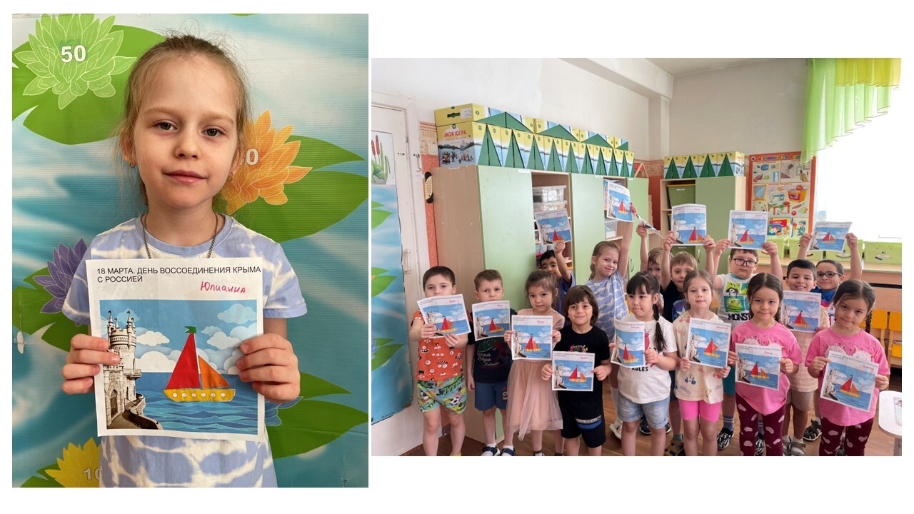 С целью формирования у детей патриотических чувств, уважения к истории своей страны, развития интереса к историческим событиям, произошедшим в Крыму 18 марта 2014 года, в группах «Мальвина», «Золотая рыбка», «Пчёлка», «Чиполино» и «Винни-Пух» прошёл тематический день, посвященный Дню воссоединения Крыма с Россией. Ребята с интересом слушали рассказы воспитателей об истории Крыма, о достопримечательностях и природе полуострова, узнали о значении полуострова для нашей страны, рассмотрели глобус и месторасположение полуострова; символику края. Дошкольники получили много интересной и полезной информации об уникальном и неповторимом уголке планеты Земля - полуострове Крым. Этот день подарил детям хорошее весеннее настроение и яркие впечатления!