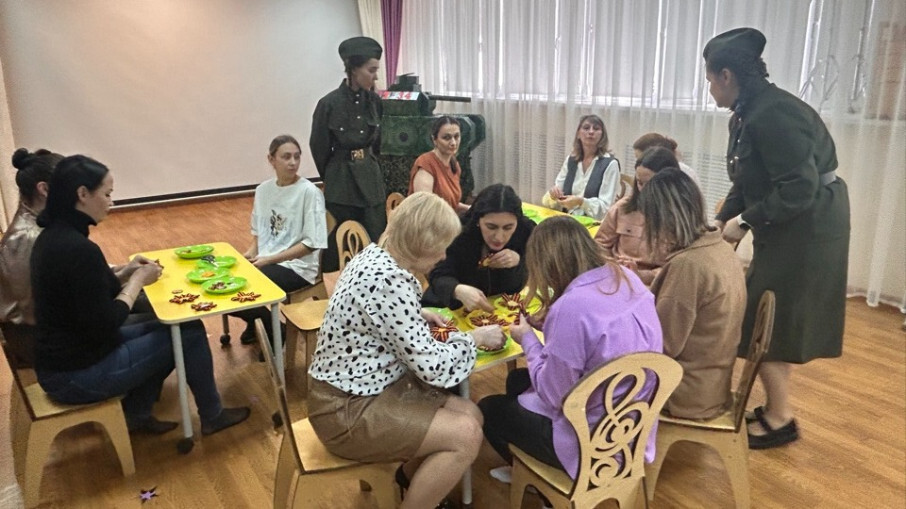 Гостям мероприятия была предоставлена возможность не только услышать стихотворение в исполнении воспитанницы Анастасии В., но и принять участие в минуте молчания, которая символизирует Вечную народную память и скорбь о жертвах фашизма, единение поколений в неприятии нацизма, защите ценностей человечества. Душевные слова, прочитанные педагогом Анной К., о значении георгиевской ленты для каждого из нас, были приглашением на мастер- класс по изготовлению красивой ленты-значка.